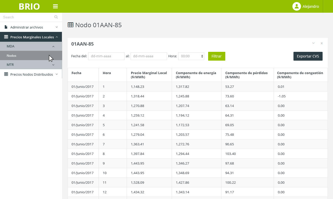 Hicimos un sistema para la empresa de energía Brio para la administración, almacenamiento y análisis de la información proporcionada por el CENACE (Centro Nacional de Control de Energía) respecto al consumo de energía en todo el país. Con esta información se generan reportes por periodos y por ubicación así como comparativos entre nodos y regiones.
